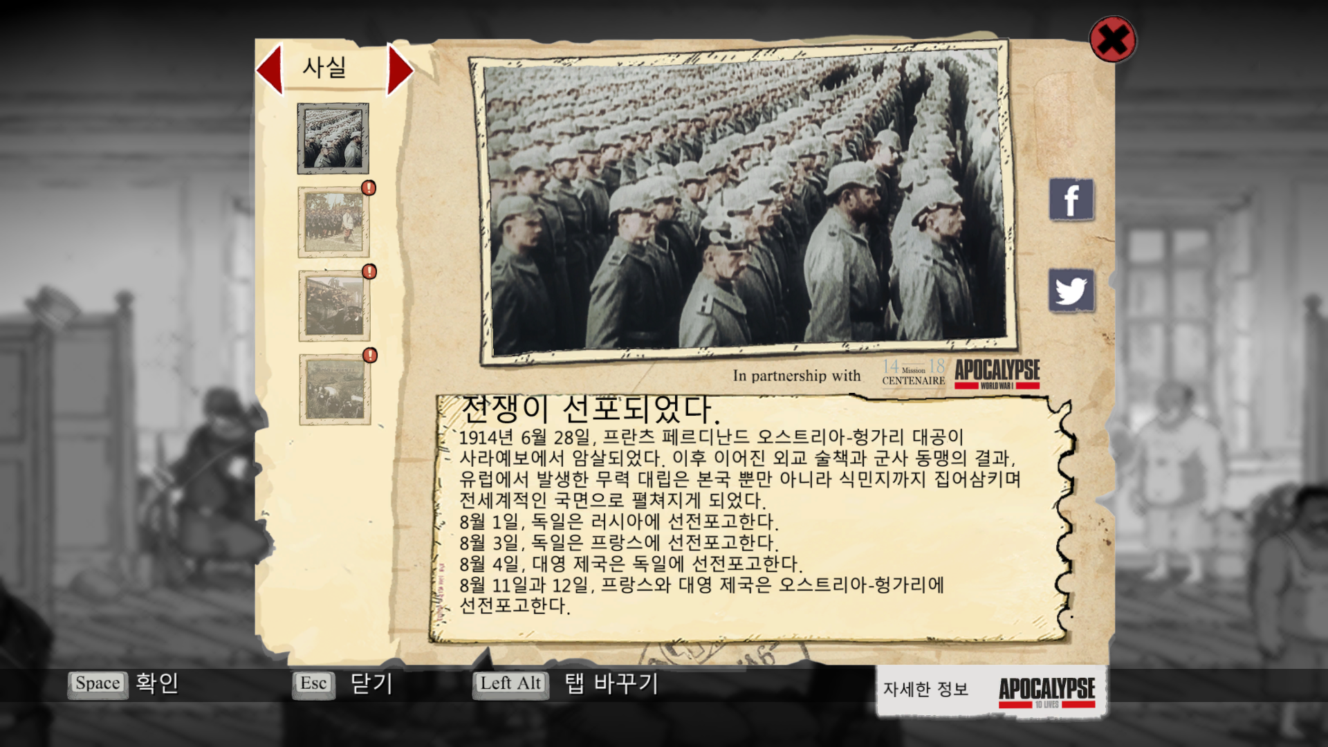 위와 같이 1차 세계 대전에 대한 실제 사실들도 게임내에서 확인할 수 있습니다.